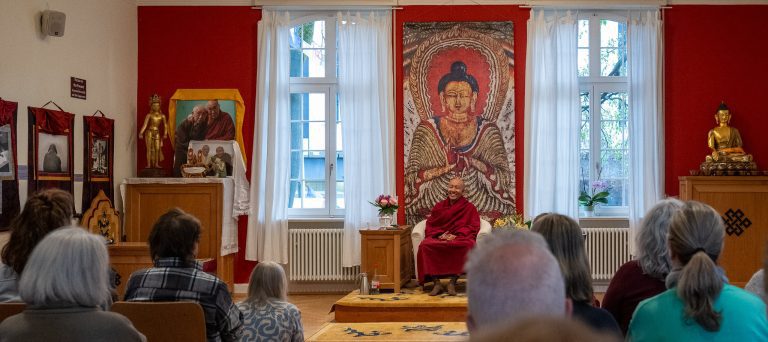 Once a month, we invite our spiritual director Zong Rinpoche and other young teachers to give a one-hour talk on a specific topic or to host a Q&A session. Dates, topics, and the Zoom link can be found on our website in the events section. The talks are held in English; translation into German and other languages is provided when possible.