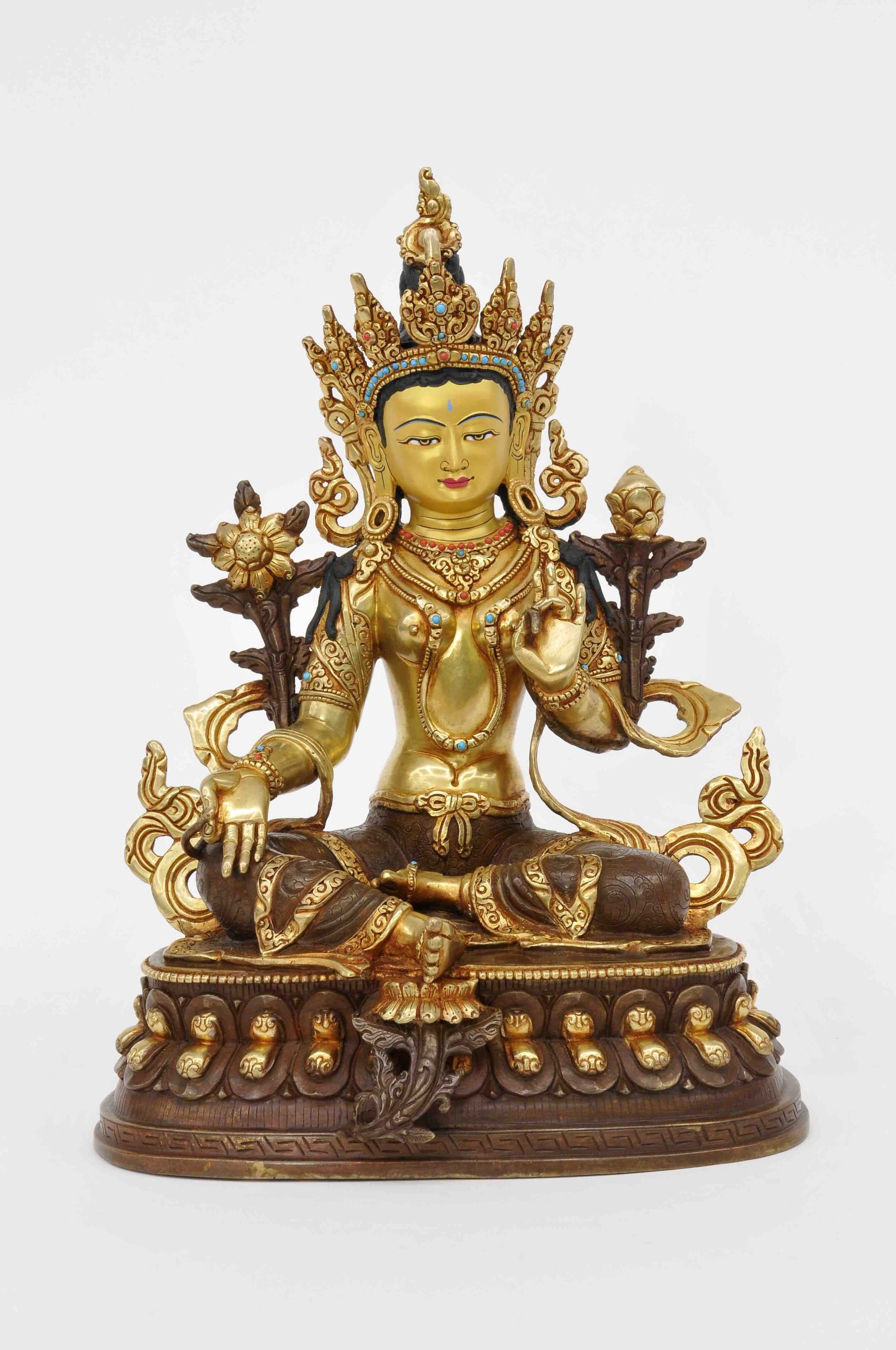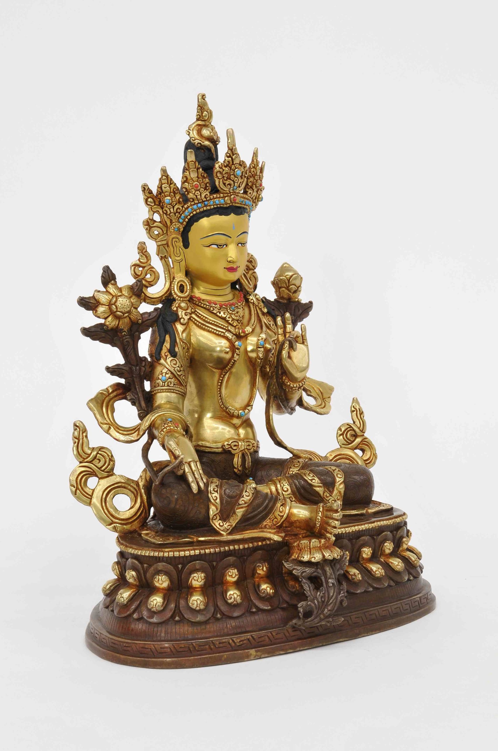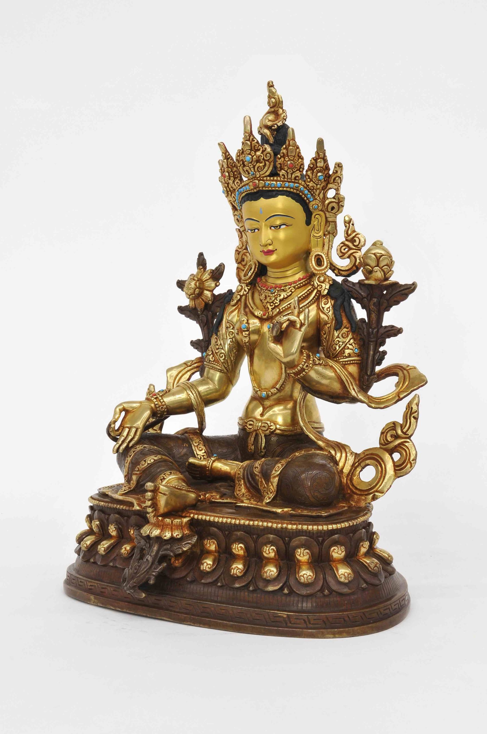 Statue Grüne Tara, teilvergoldet, Höhe 33 cm