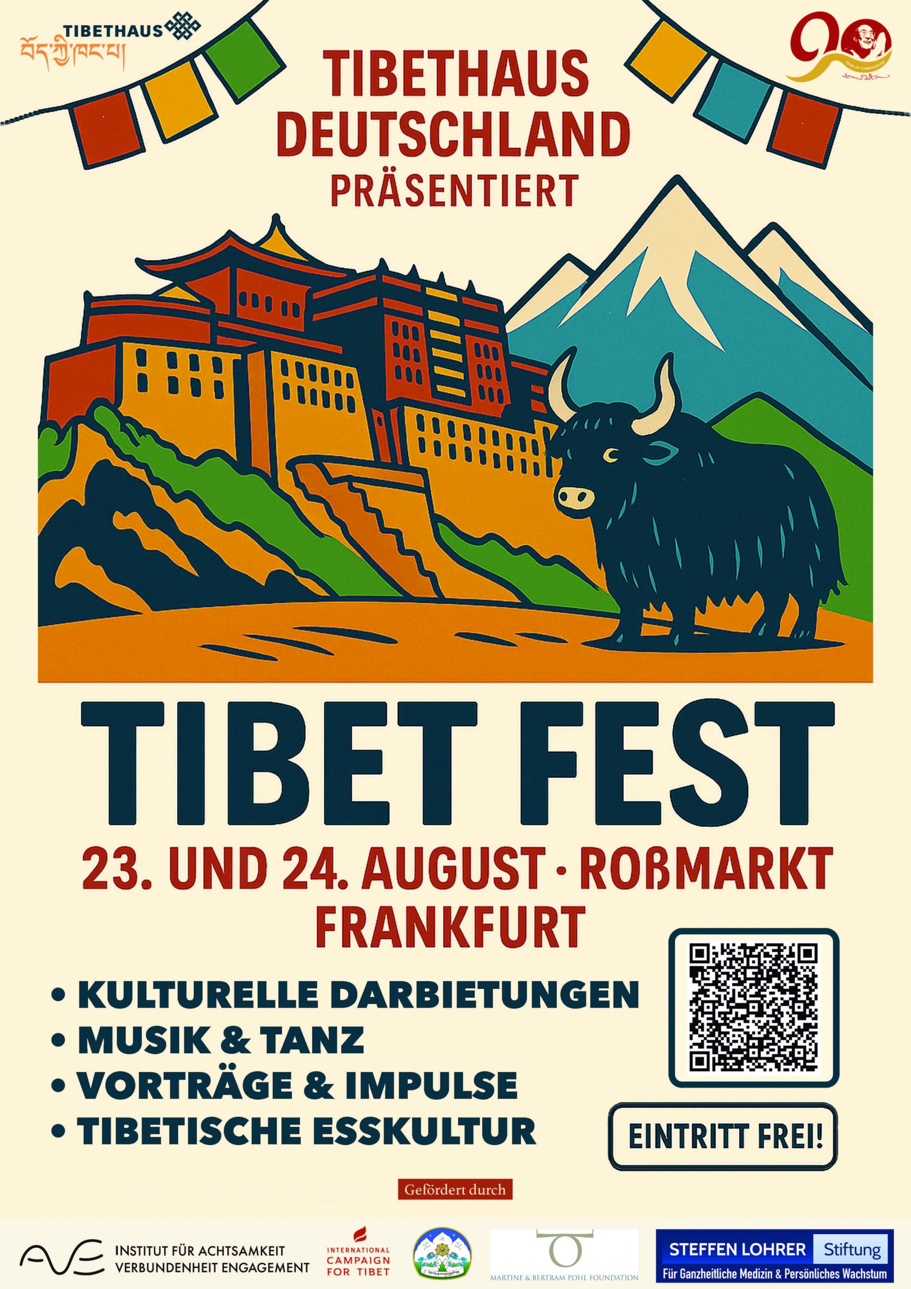 Das Tibet Fest steht ganz im Zeichen der Bewahrung und lebendigen Vermittlung tibetischer Kultur im Westen. Anlass sind zwei bedeutende Ereignisse: der 90. Geburtstag Seiner Heiligkeit des XIV. Dalai Lama und das 20-jährige Bestehen des Tibethaus Deutschland e.V., das sich seit seiner Gründung für die Förderung der tibetischen Kultur und den interkulturellen Dialog engagiert.