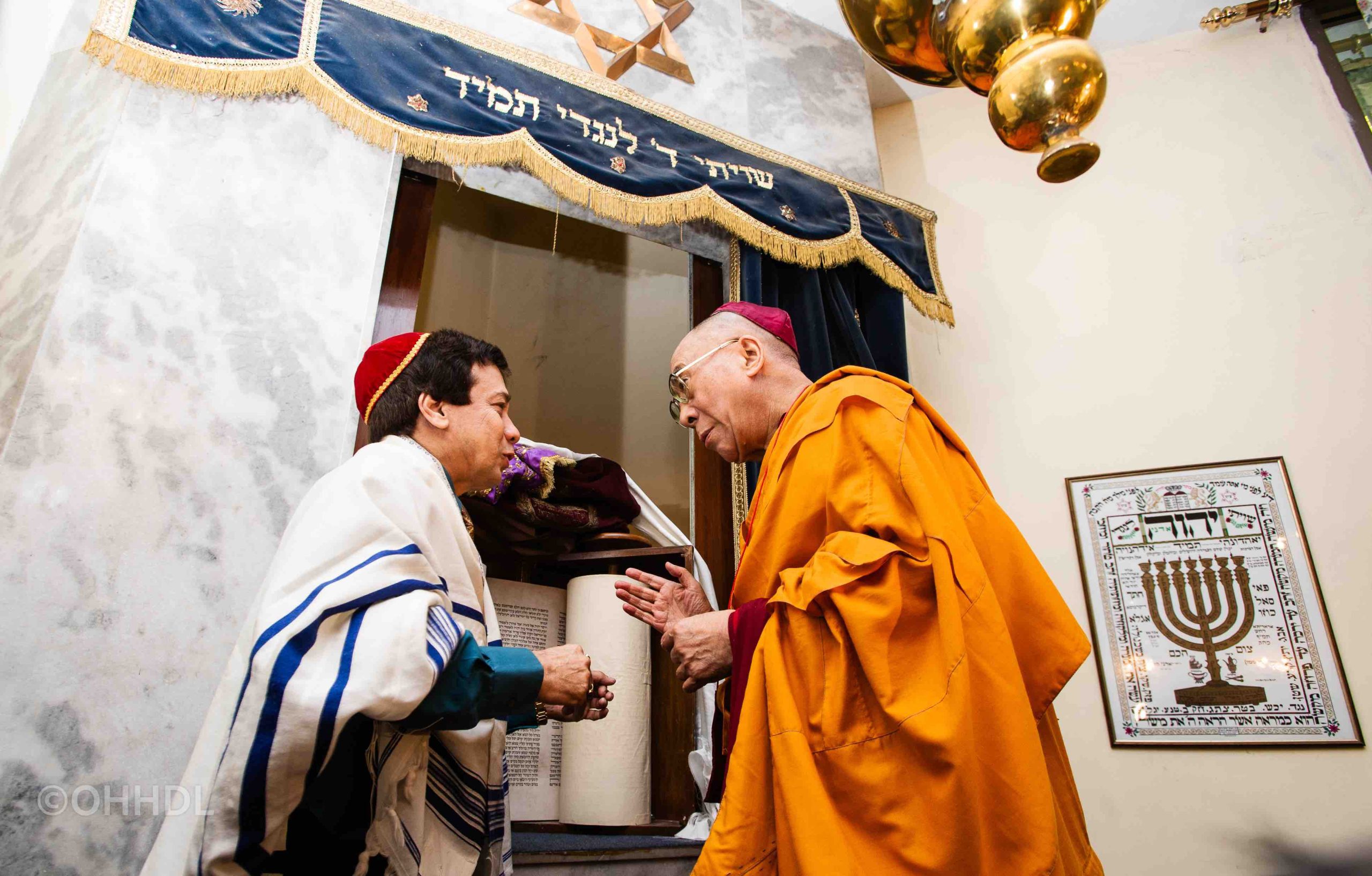 With a Jewish follower during a visit to the Judah Hyam Synagogue in New Delhi, India, on Tuesday, 31 March 2009.