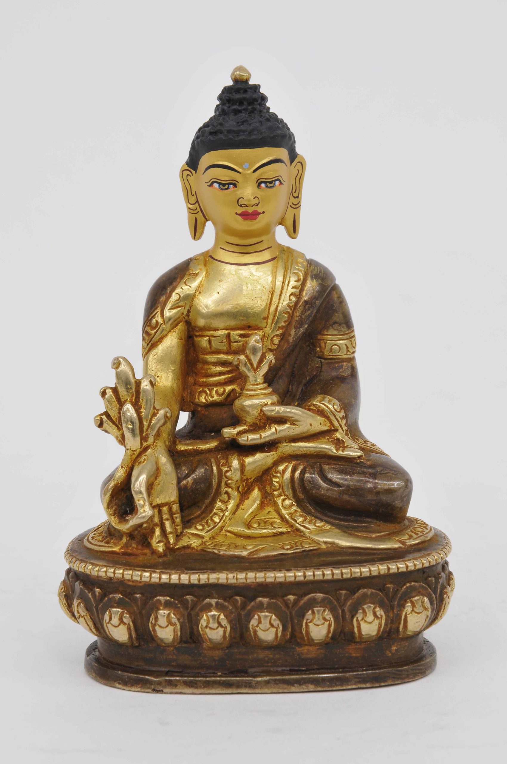 Statue Medizinbuddha, teilvergoldet, Höhe 10,5 cm
